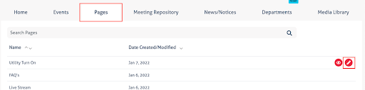 - Hover over the page you want to edit and click on the pencil icon to open the editor.